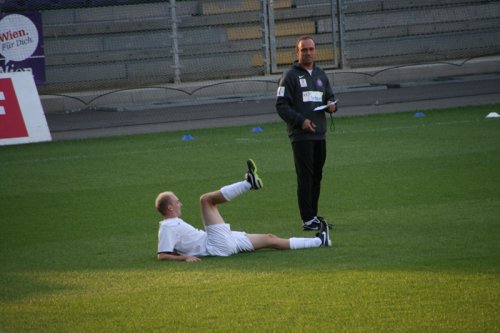 Spät aber doch nun ein paar Fotos von meinem Fußballmatch gegen die Kampfmannschaft der Wiener Austria im Horrstadion . Nach dem Training mit Ivica Vastic zwei Tage zuvor, hatte ich leider so einen extremen Muskelkater, dass mein Oberschenkel nicht all zu lange gehalten hat. Trotzdem eine tolle Sache gegen Schumacher, Troyanski und Co im Horrstadion spielen zu dürfen. Danke nochmal an Merkur für das Gewinnspiel! Das Match endete übrigens 17:1 für die Austria 🙂
