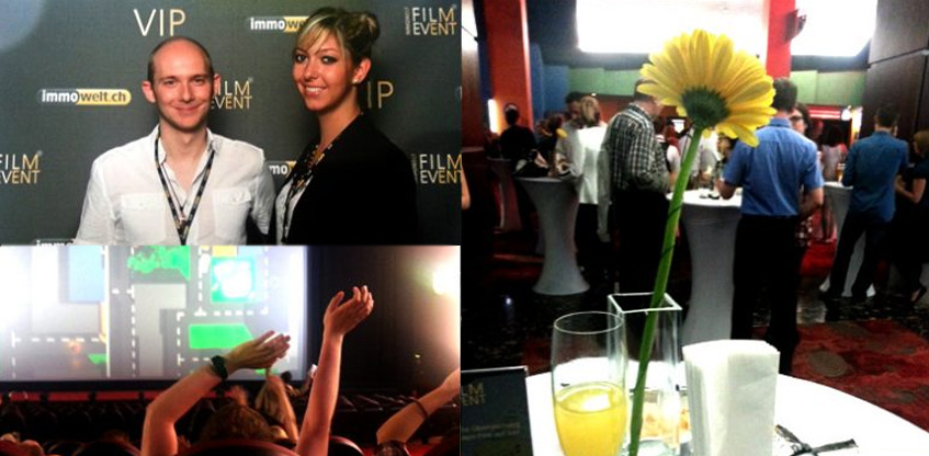 Ein VIP Kinoabend ist schon was feines und lustiges. In charmanter Begleitung folgte ich der Einladung von Immowelt.at und wurde nicht enttäuscht. Neben Wraps, Brezeln, Liptauer, Sekt, Bier und anderen kulinarischen Kleinigkeiten ging es gut gelaunt in den größten Kinosaal Österreichs, in der Milleniumscity Wien, wo ich zum ersten mal an einem Crowd Gaming teilnehmen konnte. Die Besucher, in einen linken und rechten Bereich geteilt, konnten via Armbewegungen ein Auto auf der 260m² großen Leinwand steuern und so gegeneinander spielen. Sehr amüsant und für mich überraschend, dass alle derart begeistert mitgemacht haben.