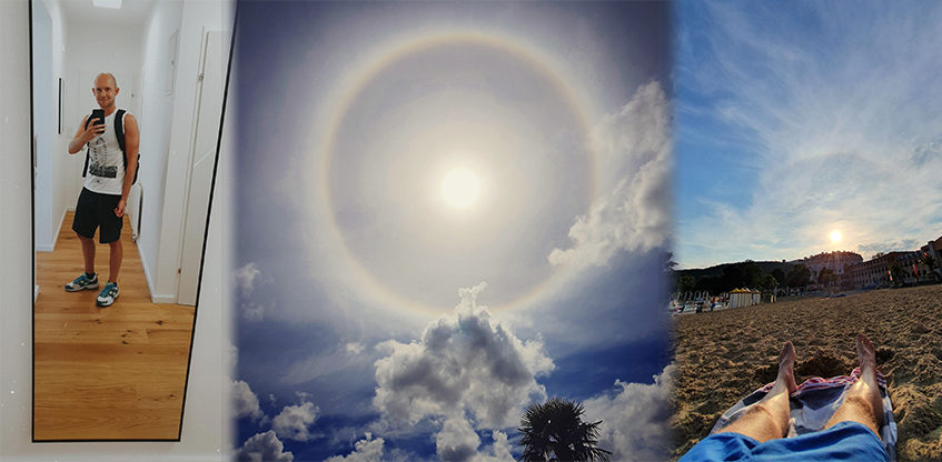 Geküsst von der Sonne und von Lippen, die den meinen bis vor Kurzem noch ganz fremd waren, liege ich auf feinem Sand gebettet unter einem doppelten Halo-Ring, der wirkt als wär er nicht von dieser Welt. Ein Naturschauspiel, dass nur wenige bemerken – sind sie doch damit beschäftigt, Aperol gefüllte Gläser und das eigene Gesicht in einen Instashot zu packen. Während meine Ohren in Dauerschleife die Töne Max Herres vernehmen und sich mein Kopf auf die Reise nach Athen begibt, frage ich mich, ob die Ringe, die die Sonne in den schönsten Regenbogenfarben grad umgeben, auch dort schon mal gesichtet wurden.